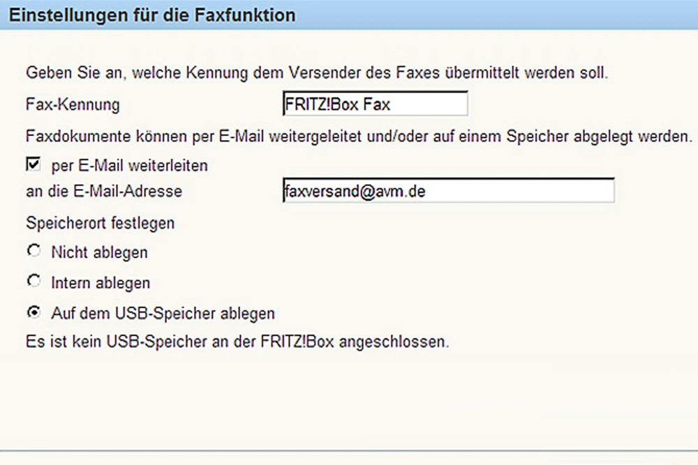 Empfangene Faxe werden direkt auf der FRITZ!Box oder auf angeschlossenen USB-Speichern gespeichert. Oder du lässt dir die Faxnachrichten via E-Mail an dein Postfach weiterleiten. Dabei kannst du sogar mehrere Empfänger auswählen.