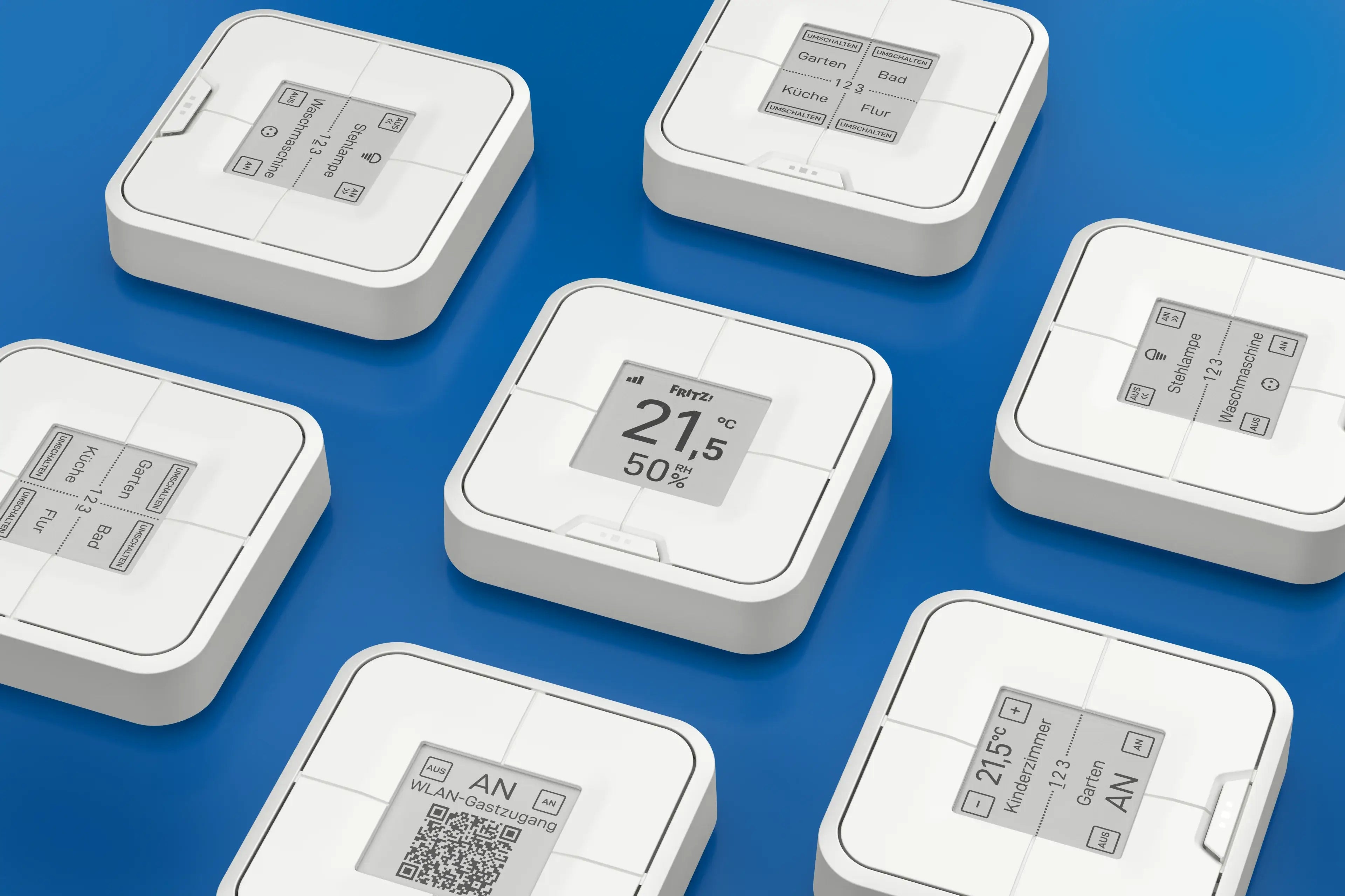 Mit FRITZ!DECT 440 lassen sich weitere praktische Smart-Home-Anwendungen realisieren. So kannst du Vorlagen oder Szenarien schnell aktivieren, den Anrufbeantworter schalten und den QR-Code für den WLAN-Gastzugang für deine Gäste anzeigen.