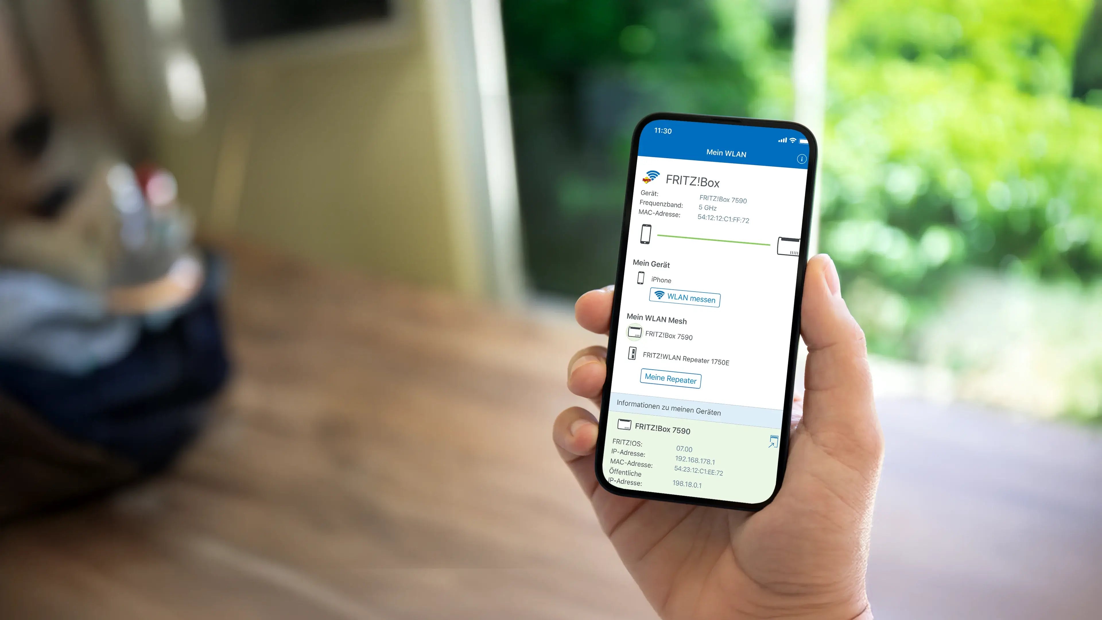 Dank der FRITZ!App WLAN kannst du für deine Repeater ganz einfach den idealen Standort ermitteln lassen. Verbinde den Repeater mit der FRITZ!Box und lasse die App eine kurze Messung durchführen. Anschließend teilt dir die FRITZ!App WLAN mit, ob du die Position noch optimieren kannst.