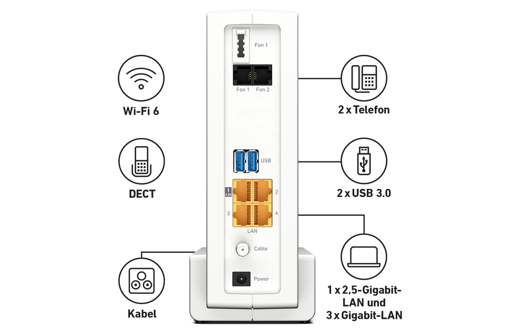 Be it DSL, cable or fibre optics: Thanks to router freedom, you can use the FRITZ!Box with any internet service provider and benefit from the powerful Wi-Fi network, comprehensive phone system, regular function and security updates, and countless other convenience features.