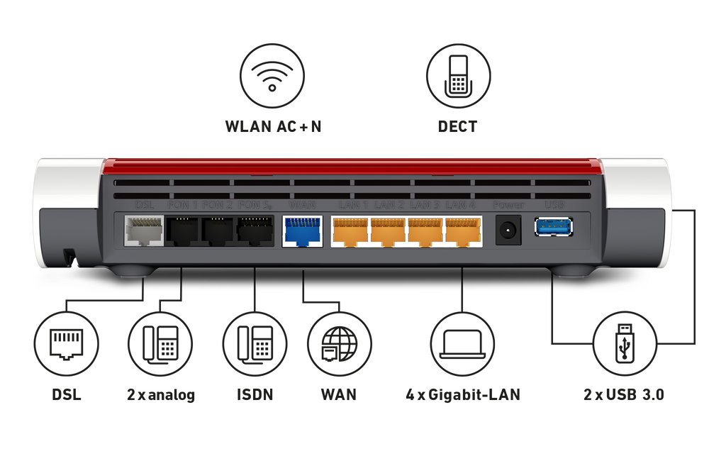 Be it DSL, cable or fibre optics: Thanks to router freedom, you can use the FRITZ!Box with any internet service provider and benefit from the powerful Wi-Fi network, comprehensive phone system, regular function and security updates, and countless other convenience features.