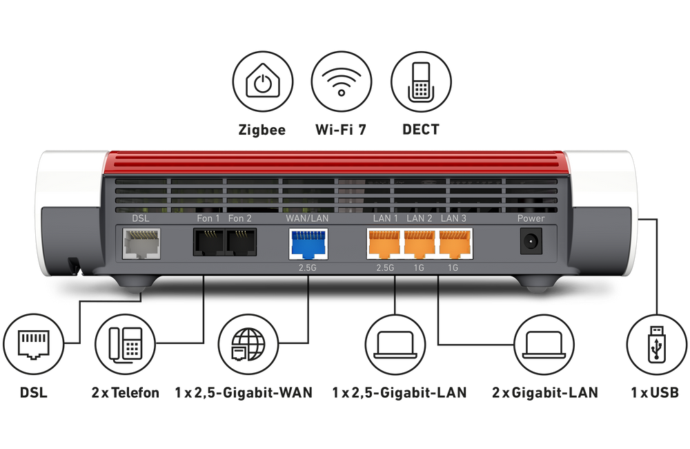 Be it DSL, cable or fibre optics: Thanks to router freedom, you can use the FRITZ!Box with any internet service provider and benefit from the powerful Wi-Fi network, comprehensive phone system, regular function and security updates, and countless other convenience features.