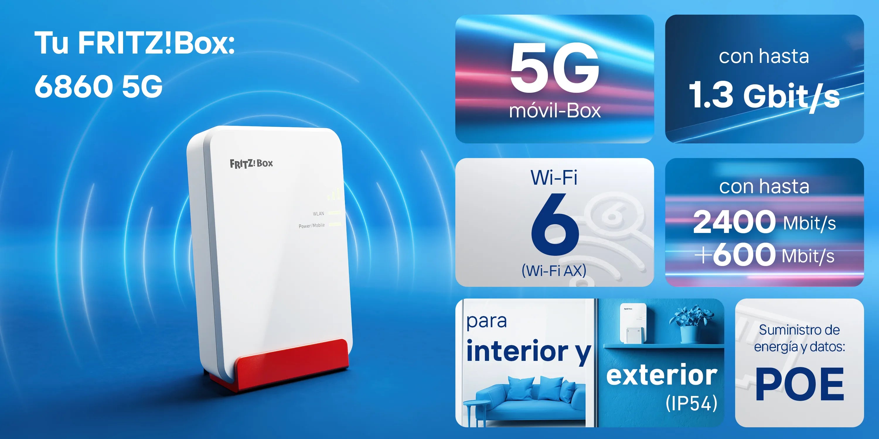 Tecnología de alto nivel a través de la red móvil de 5G para interiores y exteriores con tu FRITZ!Box 6860 5G