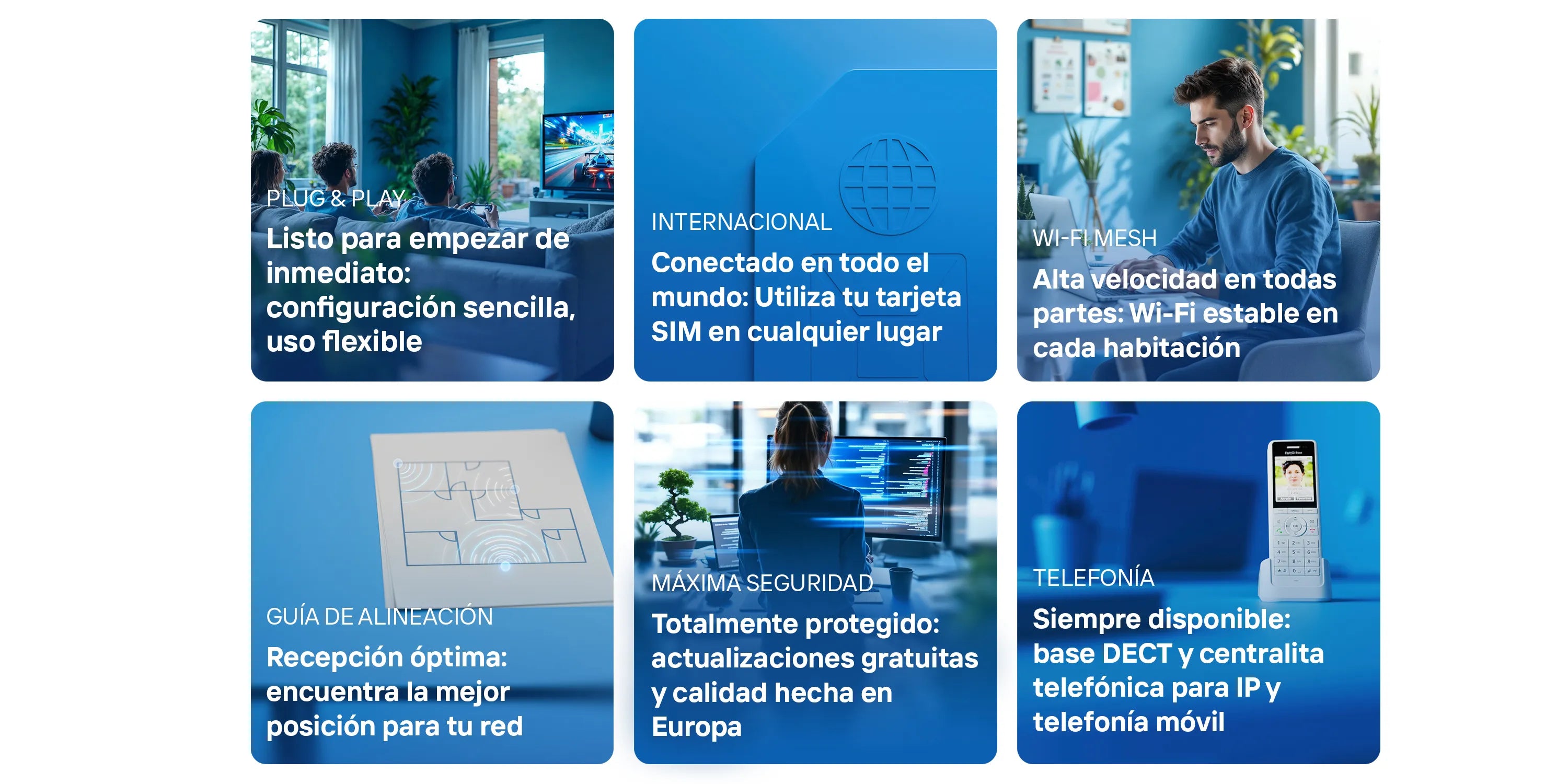 Internet inalámbrico: siempre y en cualquier lugar en línea. Con los routers móviles FRITZ! navegas de forma flexible sin cables y disfrutas de un Wi-Fi perfecto en cada habitación.