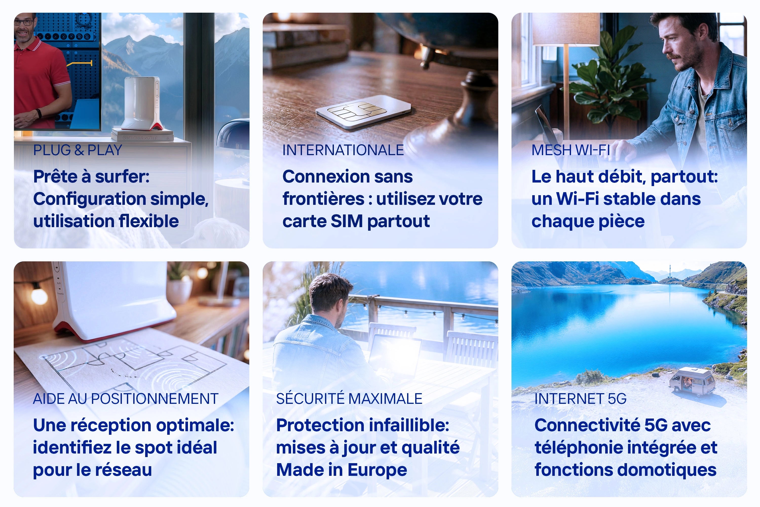 La prise en charge de la 5G ainsi que des mises à jour continues vous garantissent une FRITZ!Box toujours à jour, performante aujourd'hui et prête pour demain.