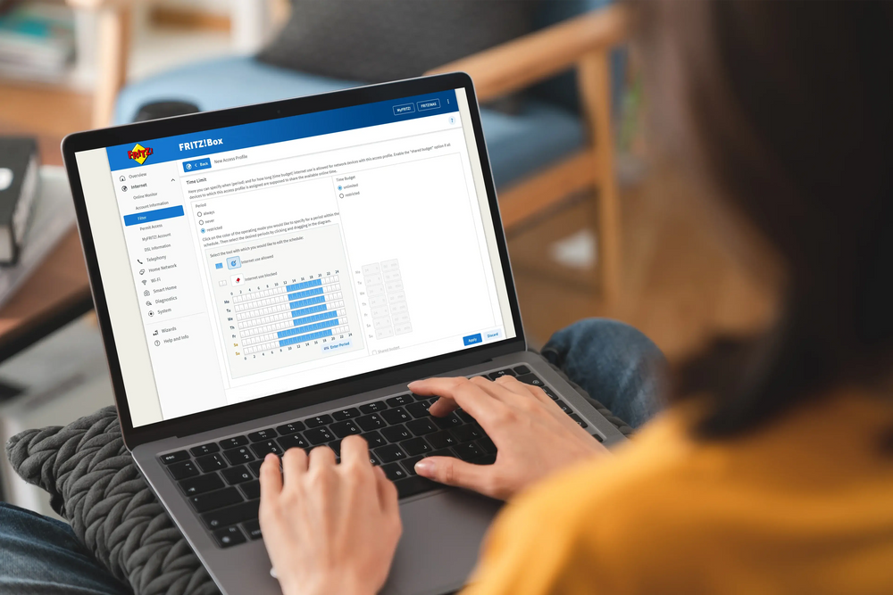 De nombreuses familles ont instauré des règles concernant le temps que leurs enfants passent en ligne. Il est donc bien pratique que la FRITZ!Box ne permette à certains utilisateurs de surfer sur Internet qu'à certaines heures. Ce contrôle parental peut être configuré rapidement et simplement et être complété par un blocage d'appareil, le cas échéant.