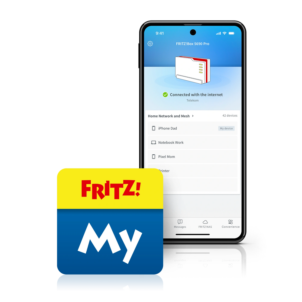 MyFRITZ!App vous permet d'avoir une vue d'ensemble claire de votre réseau domestique et d'accéder rapidement à votre FRITZ!Box. Recevez des informations actuelles sur les événements au sein de votre réseau domestique, à la maison et en déplacement.