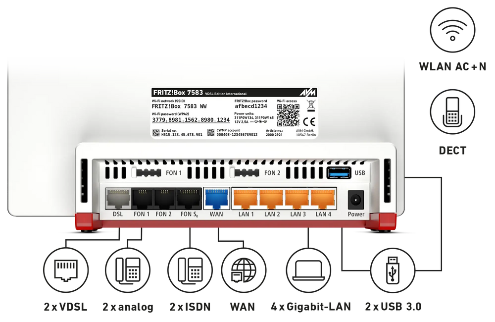 Grazie alla libertà di scelta del router, puoi utilizzare il FRITZ!Box con qualsiasi provider Internet, beneficiando di una rete Wi-Fi potente, di un centralino telefonico completo, di aggiornamenti regolari delle funzioni e della sicurezza, oltre a numerose altre funzioni utili.