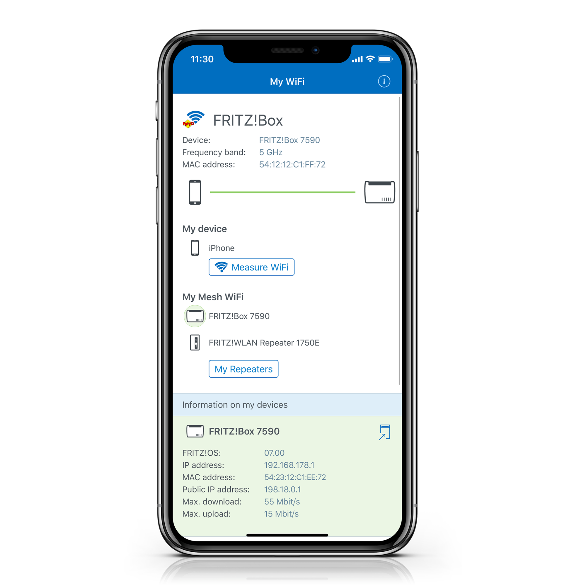 FRITZ!App Wi-Fi voorziet je van de belangrijkste informatie over je Wi-Fi-netwerk. Gebruik de app om in een handomdraai de verbindingssnelheid van je smartphone of tablet op verschillende plaatsen in het draadloze netwerk te meten. Daarnaast helpt FRITZ!App Wi-Fi je bij het vinden van de ideale plek voor je repeaters en krijgen je gasten met de app eenvoudiger toegang tot je Wi-Fi-netwerk voor gasten.