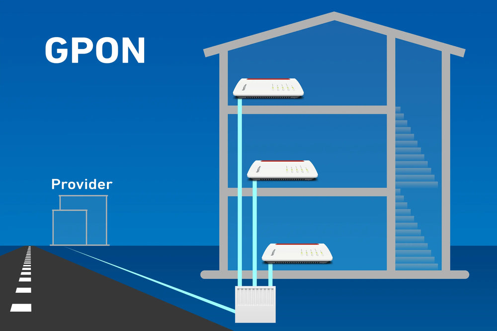 Beim PON-Glasfasernetzwerk verwendet der Netzbetreiber einfache, passive Komponenten wie Splitter. Die Kabel mehrerer Haushalte werden über diese zusammengeführt und teilen sich dann dieselbe Leitung zum Netzbetreiber: „Punkt zu Mehrpunkt“. Das bedeutet, dass alle an einer Leitung hängen. Damit ist das PON-Glasfasernetz, wie auch das Kabelnetz (DOCSIS) oder Mobilfunk, ein Shared Medium. Es teilen sich mehrere Teilnehmer die zur Verfügung stehende Bandbreite.
